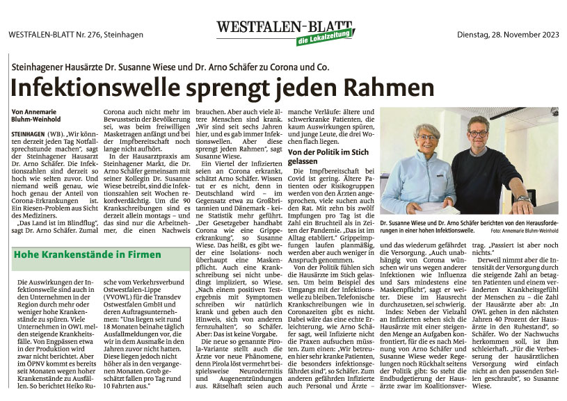 Dr. med. Arno SchäferFacharzt für Innere MedizinDr. med Susanne WieseFachärztin für Allgemeinmedizin